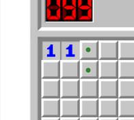 橙色箭头所指的两个2,周围已有1个雷通过其他方式判出,因此真实数字均为1,可以使用11定式。