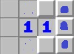 比如图中,3周围有两个雷3-2=1,2周围有一个雷2-1=1,故简化为11模式,画点的两个格子可以直接打开。